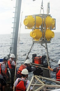 When we departed Skidaway for our “left coast” retirement in 2008, Martial Taillefert (Georgia Tech) was kind enough to adopt the old BECIs and various other benthic instruments and all their paraphernalia. It’s a pleasure to see what appears to be a BECI or a close relative in active use. There’s an additional float on her frame now, which must mean there is also more of a scientific payload to buoy.